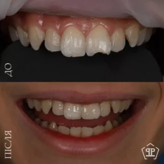 Це відновлення зуба за допомогою спеціального матеріалу – композиту, що імітує природну емаль. Реставрація приховує дефекти: сколи, тріщини, плями, великі щілини між зубами.