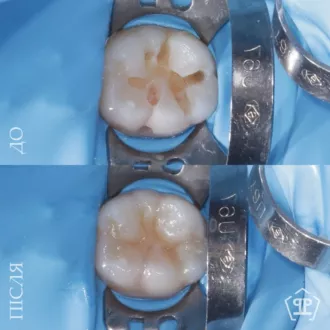 Після видалення всіх уражених карієсом тканин лікар герметизує порожнину, що утворилася пломбувальним матеріалом, відновлює стінки зуба і приступає до художньої реставрації поверхні коронки зуба. Це допоможе детально відновити всі анатомічні особливості поверхні зуба і зробити пролікований зуб невідмінним від інших.